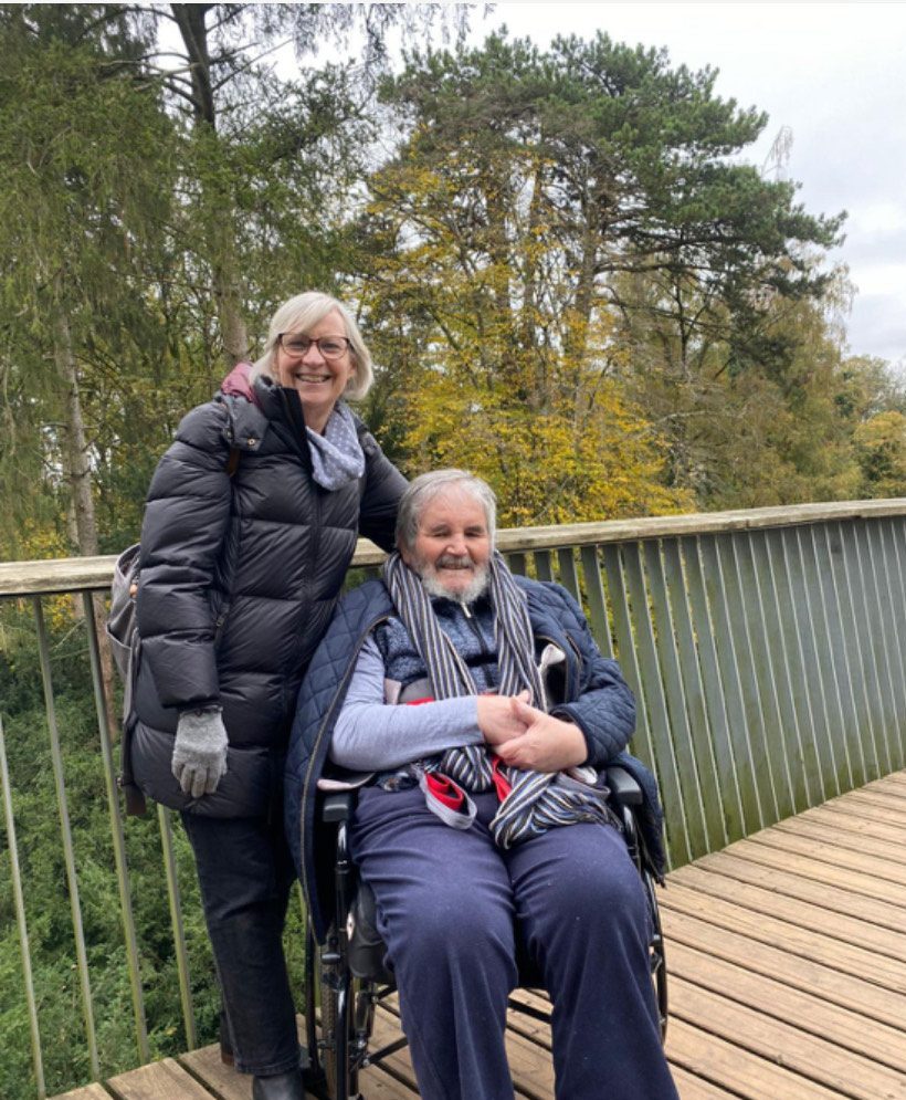 “After Chris’s diagnosis, there was so much to think about, so much to do. It can feel like a lot, on top of the day-to-day care. The carers I’ve met through PSPA have been invaluable though. If I have a question or a challenge, I can turn to our WhatsApp group or meet other Carers I’ve met through PSPA for a cuppa and get answers and understanding (and importantly relax and share a laugh) from people who really ‘get it’. Professionals can help with many things, but they don’t always understand the day‑to‑day impact. Other carers do.”