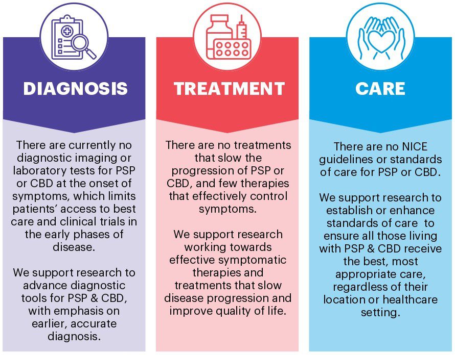 Research is crucial for our purpose of creating a better future for everyone affected by Progressive Supranuclear Palsy and Corticobasal Degeneration. These rare and progressive neurological conditions take years to diagnose and currently have no cure.